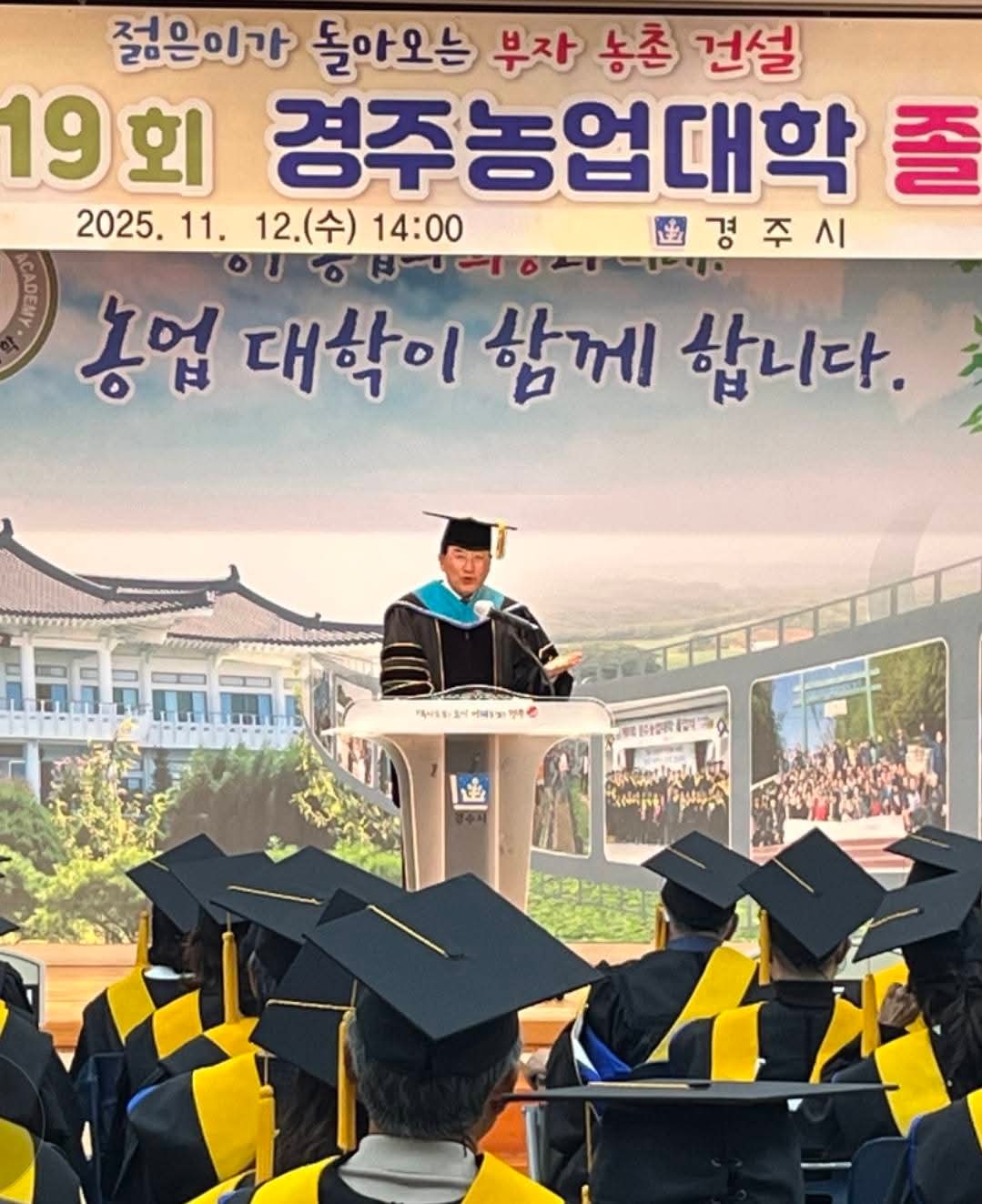 경주농업대학 100명의 전문농업인, 졸업 경주시농업기술센터(소장 김정필)는 11월 12일(화) 농업기술센터 대강당에서 ‘제19회 경주농업대학 졸업식’을 개최했다. 이날 행사에는 주낙영 경주시장을 비롯해 졸업생과