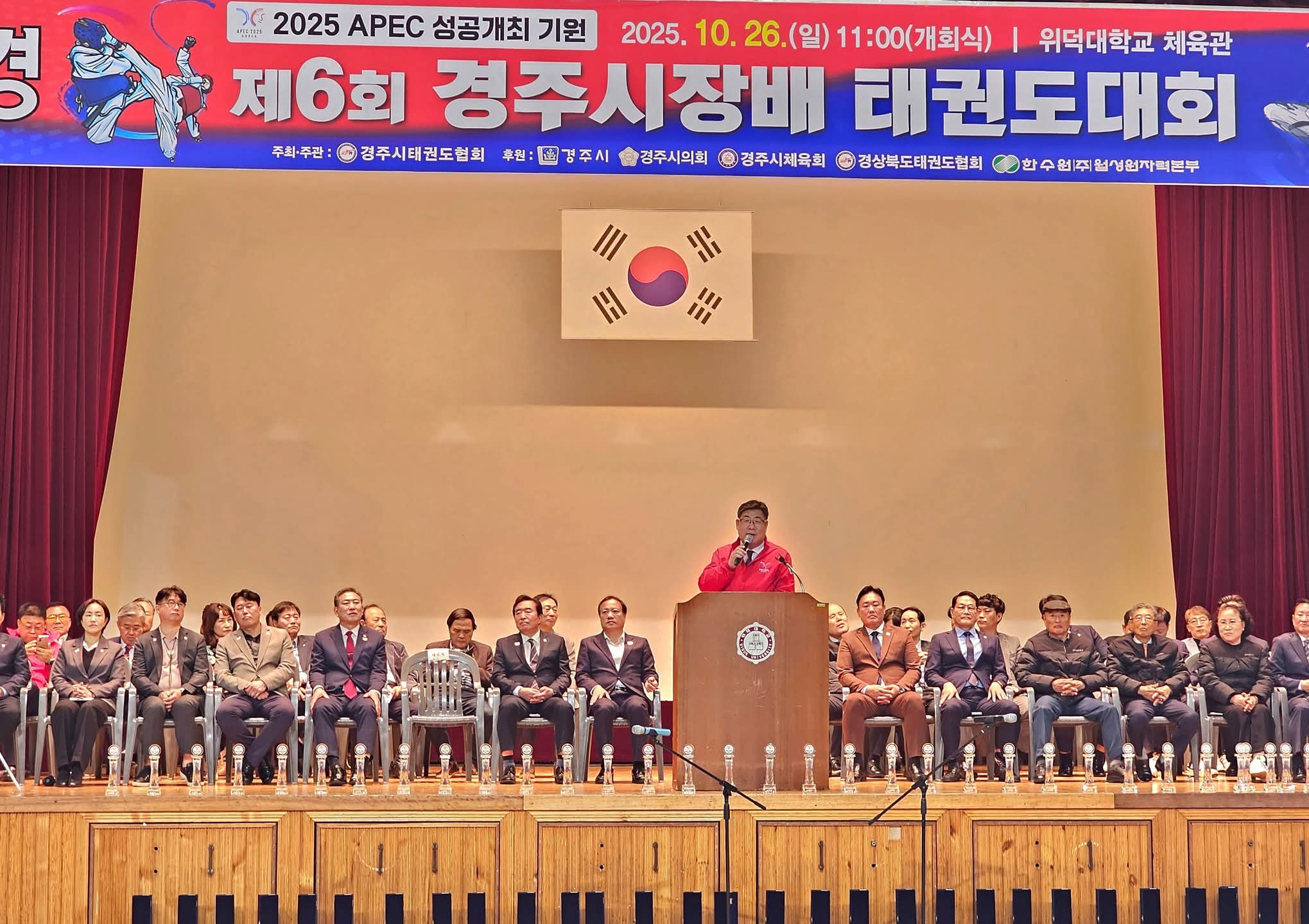2025 APEC KOREA의 성공 개최를 기원하며 열린 ‘제6회 경주시장배 태권도대회’가 26일 위덕대학교 체육관에서 선수와 학부모, 관중 등 약 2,000여 명이 참여한 가운데 성황리에 막을 내렸다.
