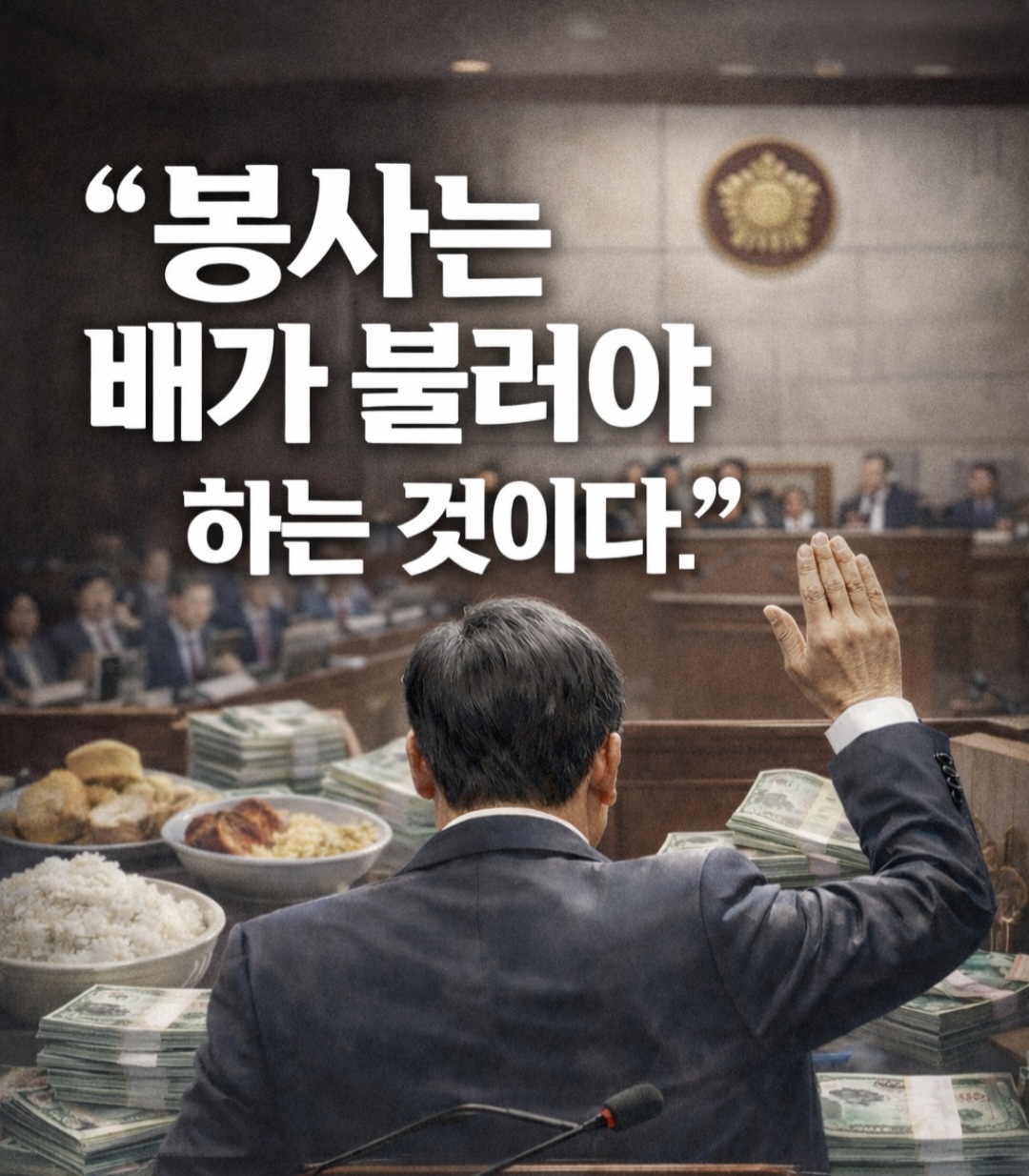봉사는 배가 불러야 하는 것이다.지인들이 나보고 내년 선거에 나가란다. 스펙도 좋고 추진력도 좋고 정의감도 있다고 칭찬을 하면서 말이다.“내 배가 고픈데 무슨 봉사를 한단 말인가.”시의원의 공천, 그 기준은 과연 무엇일까? 지역을 발전시킬 수 있는 능력일까, 정책을 설계할 수 있는 똑똑함일까. 내가 생각하는 가장 중요한 기준은 ‘충성’ 아닐까? 추천받은 사람, 데리고 있던 사람, 발이 넓어 다음 내 선거에 실질적으로 도움이 될 수 있는 사람. 그중 얼마나 충성할 수 있는가가 공천의 핵심 기준이 될 것이다.나 역시 똑똑함보다 ‘나를 위해 얼마나 움직여 줄 사람인가’를 기준으로 차기를 고민한 적이 있었다. 사람이기에, 이 현실을 부정할 수 없다.이렇게 공천을 받고 선거에 나가면 유권자들은 “국회의원이 판단했으니 괜찮겠지.” 공천받은 당을 보고 고민 없이 표를 던진다 공천을 받고 생각나는 대로 공약을 만들고, 선거가 시작되면 지역구 거리에서 피켓 하나 들고 지나가는 차에 90도 인사하고 손을 흔들면 된다. 이렇게 며칠만 고생하면 시의원 배지를 4년 동안이나 붙일 수 있다.시의원이 되면 시 예산에 칼을 쥐게 되어 공무원들의 태도부터 달라진다. ‘의원님, 의원님’ 하는 소리에 망각을 하고 본인이 높은 곳에 있다고 착각을 한다. 어느새 깁스를 한 듯 자연스럽게 목에 힘이 들어가며 의원에서 의원님이 된다.이렇게 시작해 1년쯤 지나면 요령이 생긴다. 의회가 열리면 예산의 칼자루로 사람을 어떻게 다루는지 습득한다. 오로지 지키지도, 행하지도 않은 5분 발언을 의무적으로하고, 뭔지도 모를 조례를 만든다. 경로당을 찾아가고 지역 행사, 각종 모임을 돌고 술자리에 얼굴을 비추면 어느새 ‘의원의 역할’이라 생각한다.시의원이 되면 경조사 연락이 끊이지 않는다. 축의금과 조의금을 감당해야 한다. 300만 원 남짓 받는 월급으로는 생활하기는 어렵다.그때부터 돈벌이를 고민하게 된다. 자연스럽게 본인 밥그릇부터 챙기는 법안을 발의하고, 본인과 연관된 사업에 예산을 끌어오며, 자신의 사업체에 예산을 밀어 넣는다.먹고살기 위해 시의원을 하는 건지, 시민을 위한 봉사를 하는 건지 그러나 모든 의원이 이렇지는 않다. 봉사는 배가 불러야 한다. 내 배가 고픈데 무슨 봉사를 한단 말인가.각 언론사는 받아가는 보조금 앞에 혹여 예산이 삭감될까 보고도 못 본 체하니, 세상 무서울 게 없어 보이는 21명의 시의원님들내년 선거, 2026년 선거가 시작되기 전 더 나은 경주를 위해 세부적으로 의원들 1명, 1명을 언론으로서 꼬집어 볼 생각이다. 잘한 것은 어차피 잘하라고 뽑아준 자리이니 문제점만 짚어 볼 계획이다..